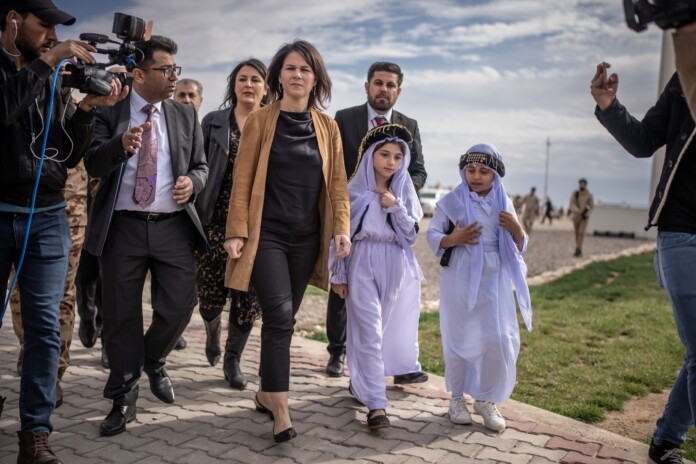 Міністр закордонних справ Бербок відвідала основні місця звірств ІД на північному заході Іраку поблизу сирійського кордону. Вона пообіцяла допомогу людям на місцях.