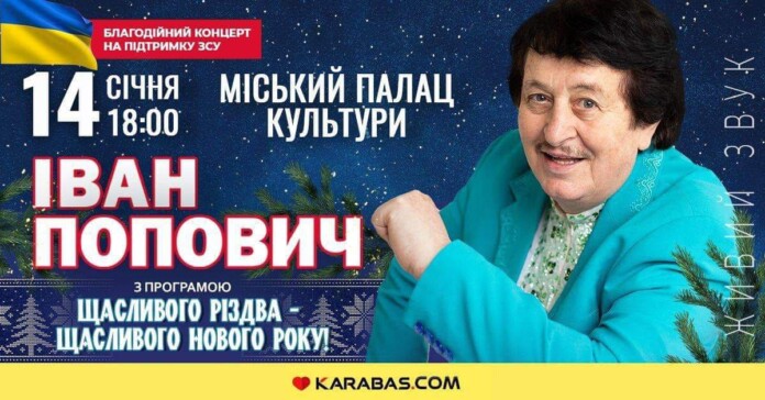 До Різдва і Нового року золотий голос української естради – Іван Попович, готує для рівнян справжній сюрприз та запрошує провести різдвяні свята разом! Його концерт відбудеться 14 січня Міський палац культури. Початок о 18:00.
