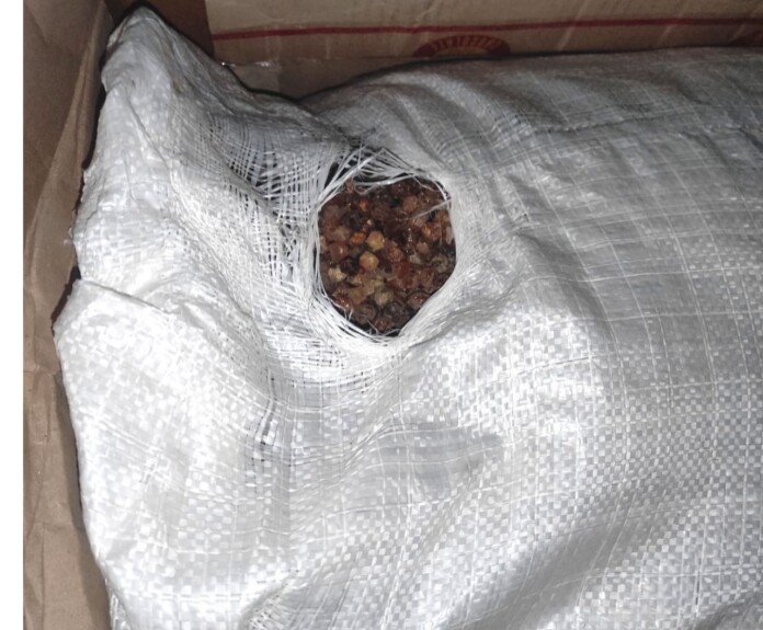 Так, у багажнику поліцейські виявили дві паперові коробки, у яких було два мішки із камінням бурштину-сирцю різної фракції. Загальна його вага — 37 кілограмів.