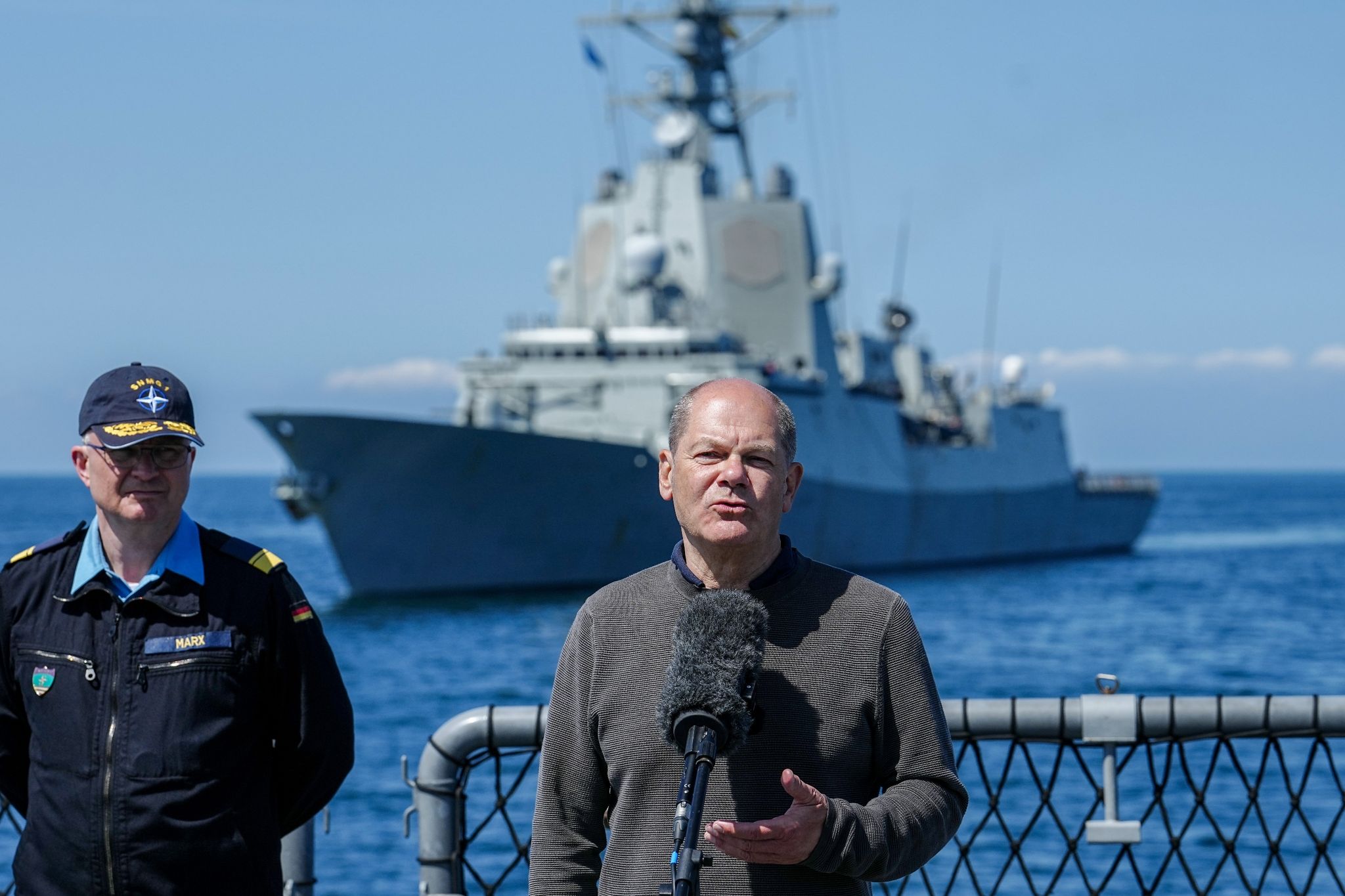 У понеділок Шольц уперше отримав повне уявлення про можливості німецького військово-морського флоту. Для цього він прилетів на гелікоптері “Sea King” з військово-морського командування в Ростоку на фрегат “Мекленбург – Передня Померанія”, який у цей час знаходився на плаву майже за 20 кілометрів від пляжів балтійського узбережжя Мекленбурга. З містка він, зокрема, спостерігав, як виплив підводний човен «U33», а корвет «Ольденбург» супроводжував фрегат.