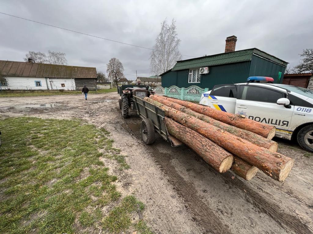 Крім того, працівники сектору реагування патрульної поліції Володимирецького відділення під час патрулювання виявили двох жителів району, які «заготовляли» дрова на зиму. Так, у селі Балаховичі поліцейські зупинили трактор кустарного виробництва із причепленою до нього підводою зі свіжозрізаними колодами сосни.