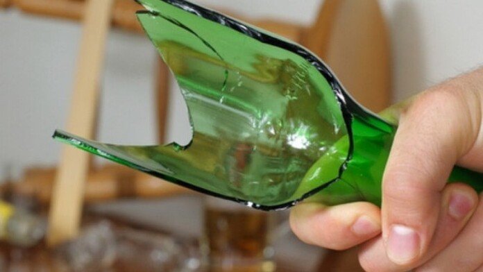 На неодноразові зауваження зухвалець не реагував. Продовжуючи свої хуліганські дії, взяв зі столу скляну ємність, відбив дно об фундамент, приставив її до горла 36-річній жінці, погрожуючи зарізати.