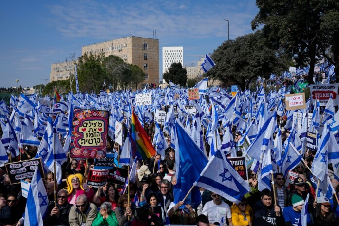 Тисячі ізраїльтян протестували перед будівлею парламенту в Єрусалимі проти запланованої судової реформи в країні. Вони розмахували ізраїльськими прапорами та тримали в руках знаки протесту. На одному з них було написано “Ми рятуємо демократію”. По всій країні пройшли інші акції протесту. Представники багатьох професій взяли участь у страйку.