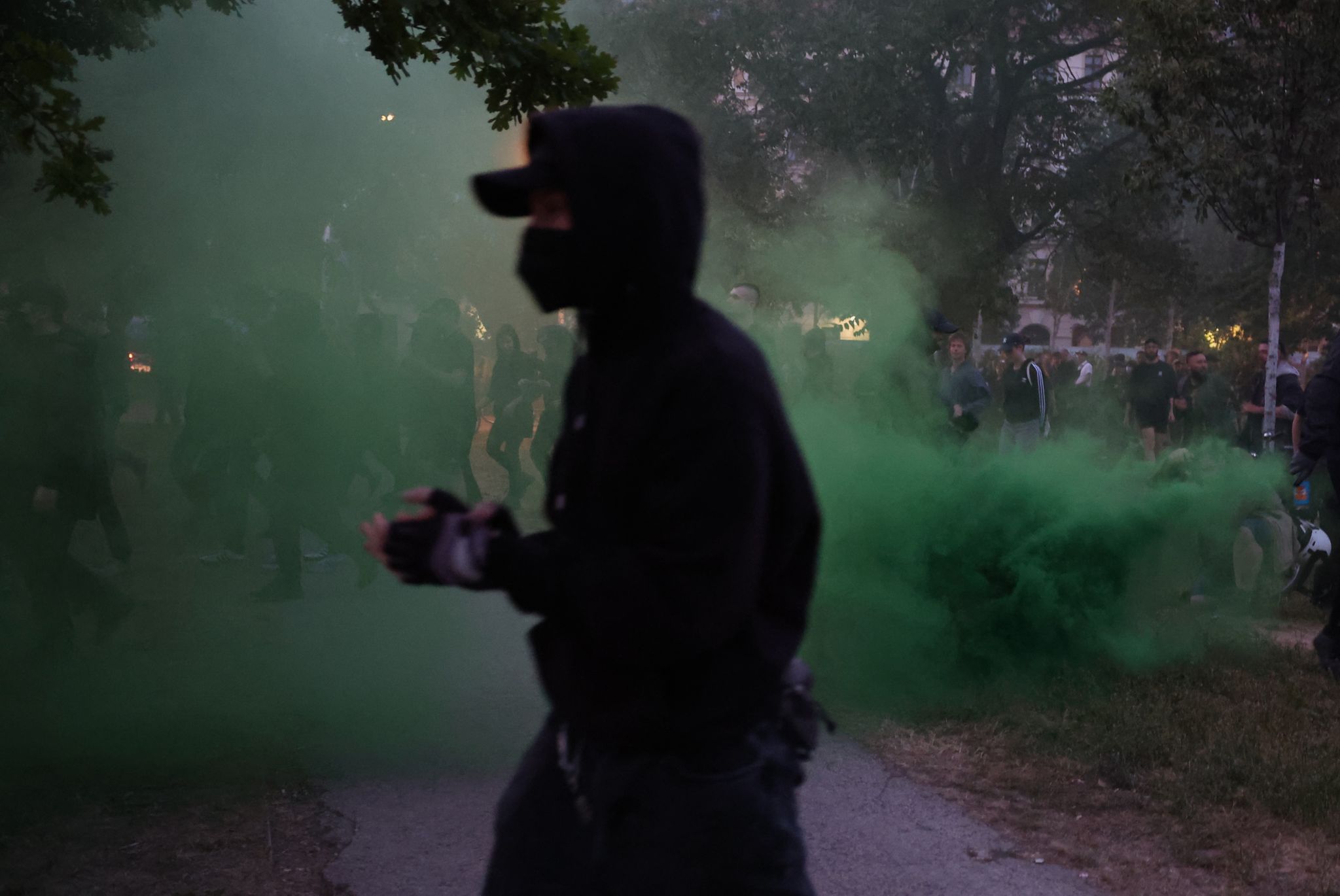 Прес-секретар поліції повідомила, що у поліцейських кидали скляні пляшки та каміння, а також піротехнічні засоби. Крім того, було пошкоджено поліцейський автомобіль. Ніхто не постраждав. За даними поліції, близько 70 підозрюваних було заарештовано. До пізнього вечора ситуація заспокоїлася.