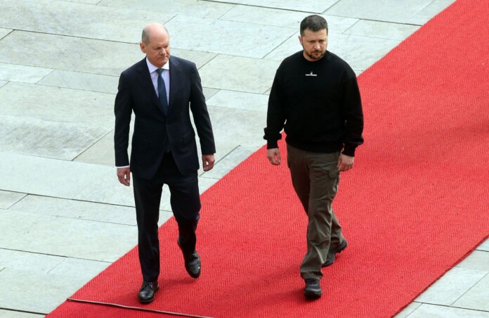 Президент України Володимир Зеленський та канцлер Німеччини Олаф Шольц (СДПН) цієї неділі разом прилетять до Аахена (Північний Рейн-Вестфалія) для вручення главі української держави премії Карла Великого. Раніше Зеленський та Шольц раніше разом дали прес-конференцію за підсумками розмови.